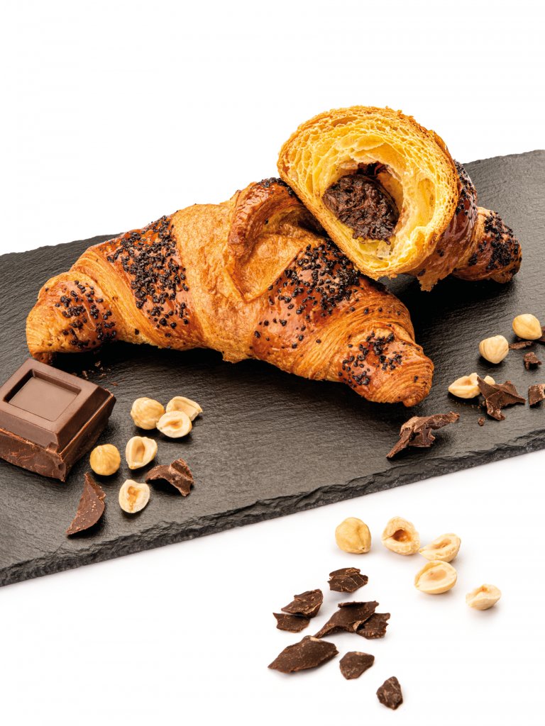 Il cornetto della tradizione italiana più fragrante, digeribile e sfogliato che mai! Realizzato con lievito naturale e farina 100% italiana, il Caruso regala volume, una super sfogliatura e una farcitura avvolgente di crema alle nocciole italiena diffondendo fragranti aromi di frutta secca. Decorato con scagliette di cioccolato.