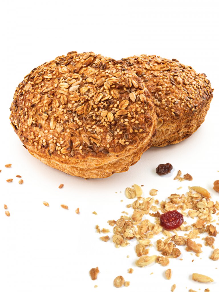 Ideato per chi segue una dieta vegana o per chi è più attento ai temi dell'alimentazione, questo cornetto vegano offre un impasto con farro, segale e orzo e una struttura soffice e corposa con un'alveolatura fine e densa. Farcito con confettura di melagrana che gli dona un profumo vinoso un po' dolce e un po' amaro, viene decorato in superficie con fiocchi d'avena e segale germinata. Ingredienti selezionati per non dover mai rinunciare al gusto, alla qualità e alla leggerezza.