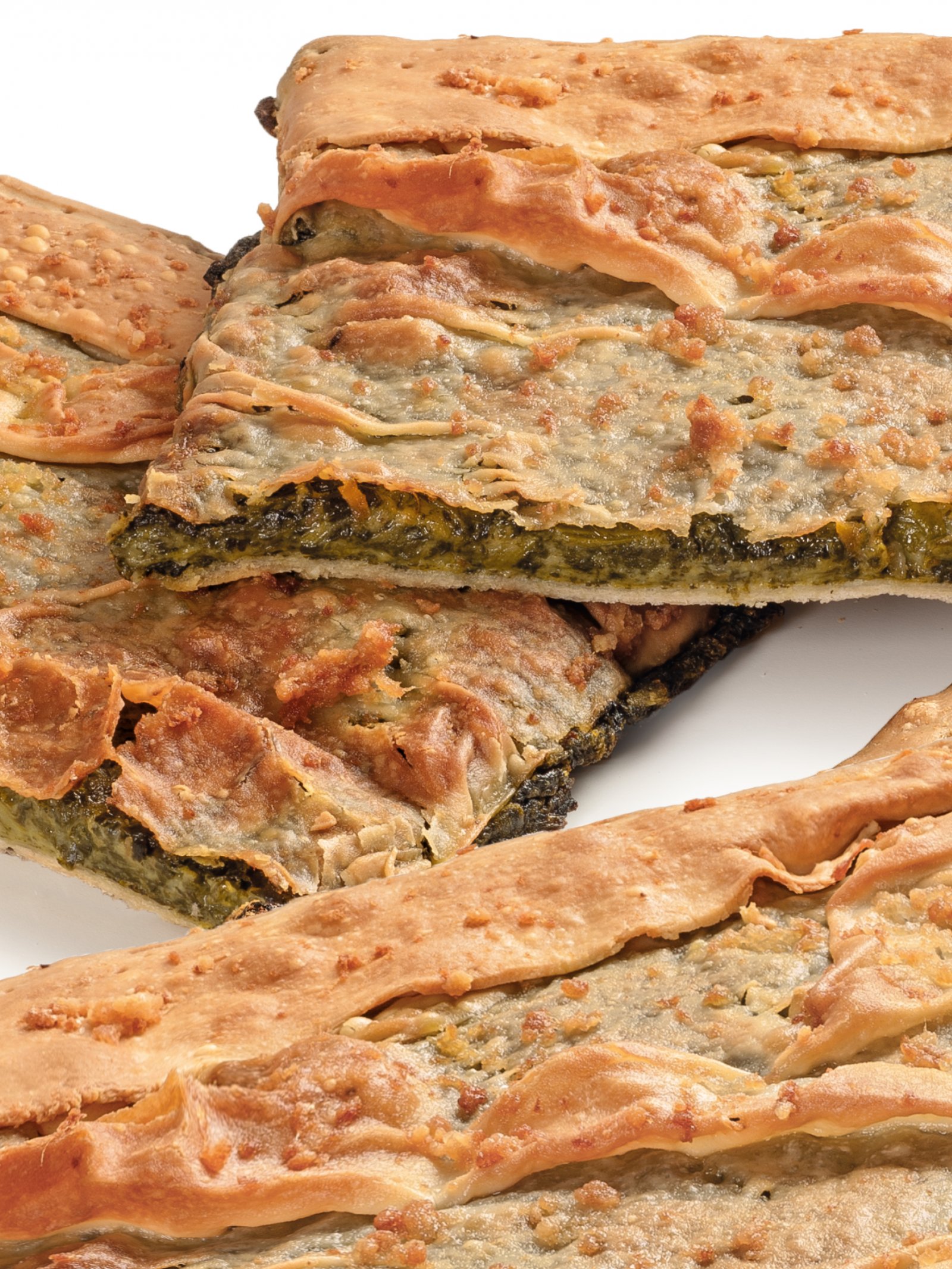 Specialità della tradizione Reggiana a base di croccante e dorata pasta sfoglia farcita con ripieno di verdure. Gli spinaci e le erbette si fondono alla pancetta e al Parmigiano Reggiano durante la cottura generando un sapore e un profumo estremamente gradevole ed equilibrato. La sfoglia superiore viene delicatamente stesa a mano creando pieghe irregolari che lo rendono immediatamente riconoscibile e gli donando una croccantezza superiore.