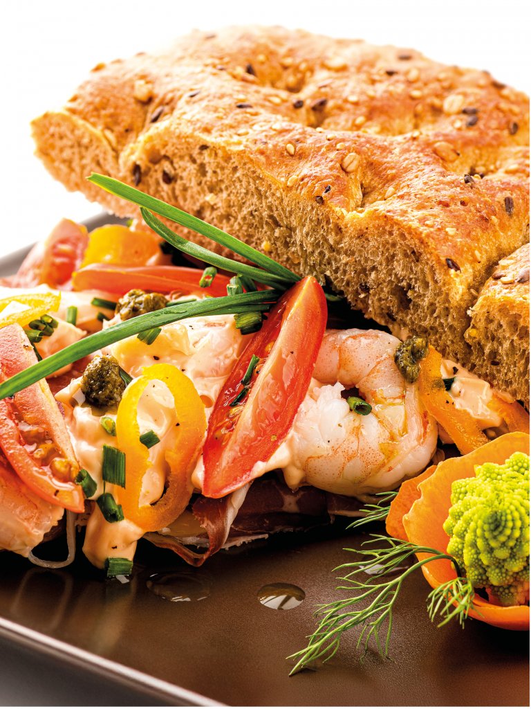 Impasto integrale ai Cereali Antichi come farina integrale di segale e farro, con aggiunta di semi di lino, girasole, miglio e sesamo. Ricca di fibre, la Focaccia Cereali Antichi offre un impasto soffice e delicato dal sapore intenso e rustico capace di esaltare tutte le farciture, da quelle più leggere per chi è più attento al benessere fisico alle farciture gourmet ricche di gusto.
