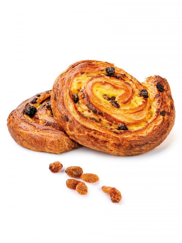 La Girella crema uvetta è una soffice viennoiserie che profuma di vaniglia. Realizzata con una ricetta ricca di burro per un impasto morbido e un gusto ricco grazie alla deliziosa uvetta, naturalmente dolce, macerata in una corposa crema pasticcera.