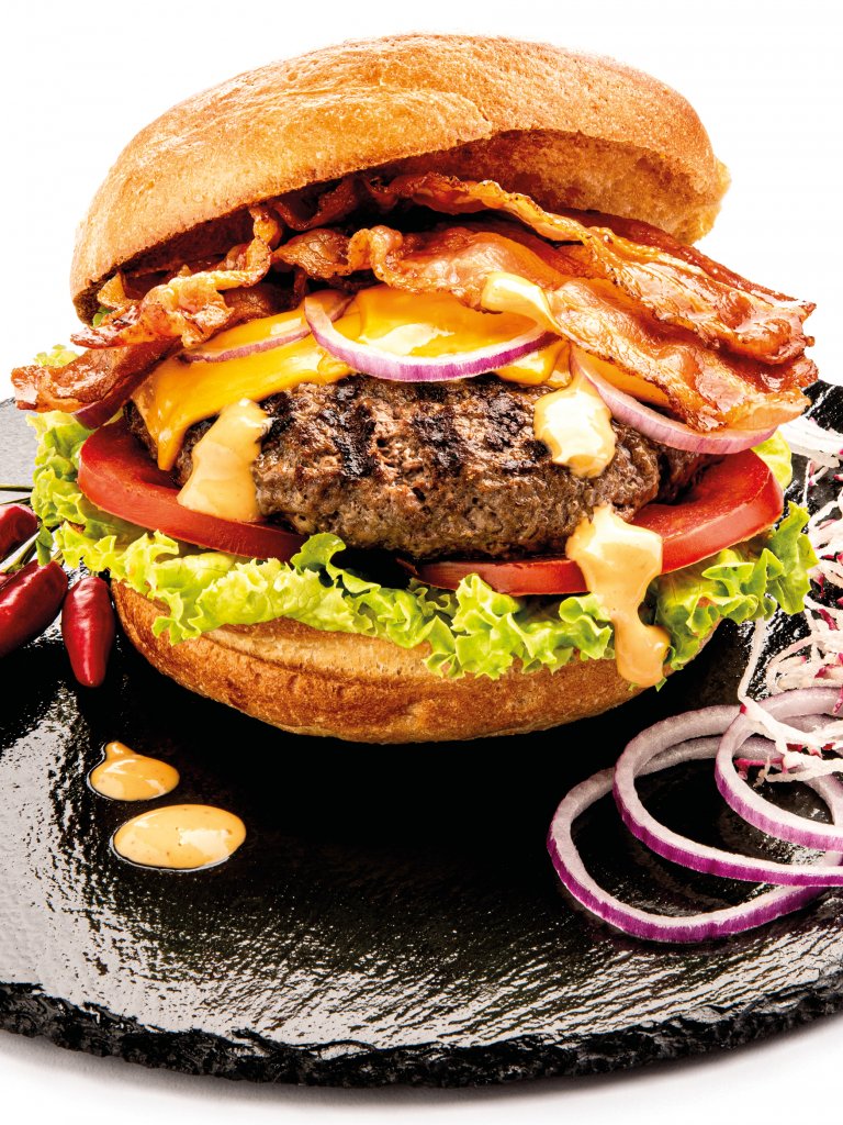 Un hambuger fatto con più del 98% di carne fresca, proveniente dai migliori allevamenti irlandesi di razza Angus. Il risultato è un sapore intenso e deciso ma sempre gradevole ed equilibrato. La consistenza al palato fa apprezzare appieno il gusto e lascia intatta la succulenza ed il sapore di questo tipo di carne.