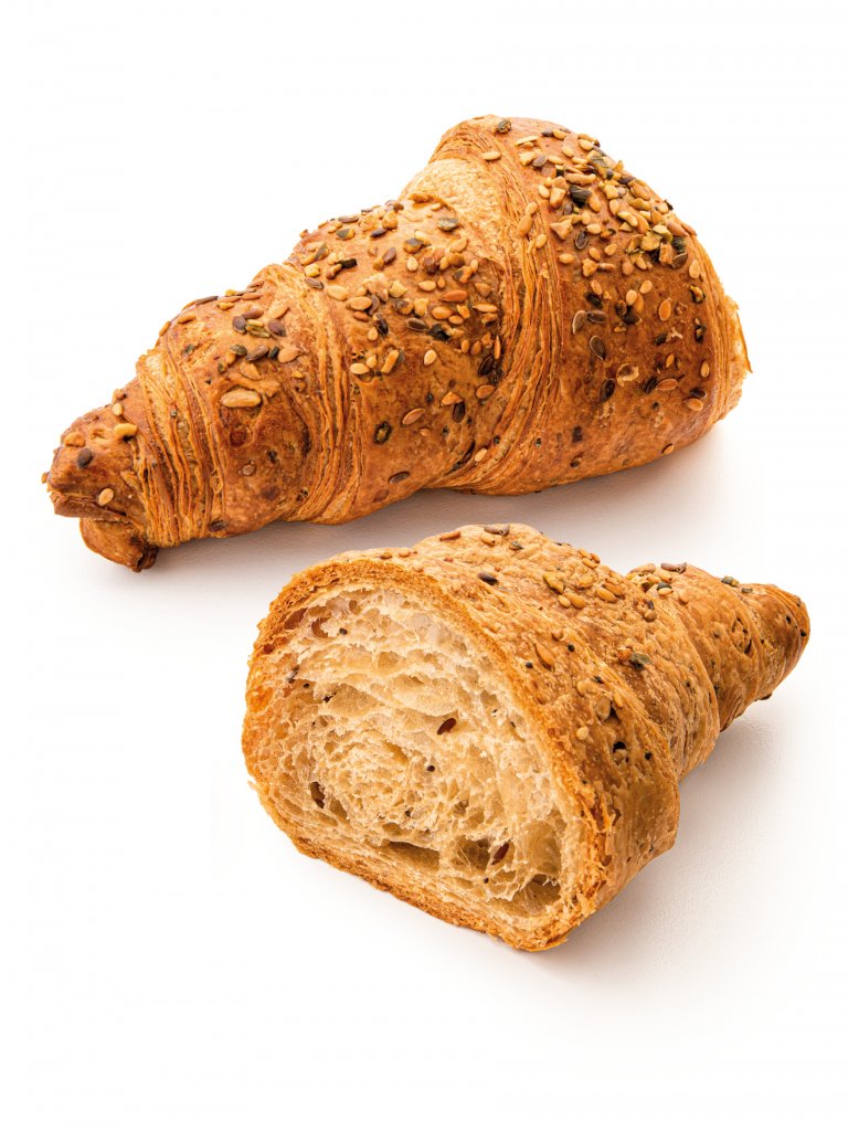 L'impasto briosciato offre consistenza e morbidezza oltre che un mix di semi di lino, girasole, papavero, sesamo e zucca sia all'interno che in superficie. Un croissant adatto a farciture dolci e salate, dal gusto neutro, ottimo anche da mangiare così com'è.