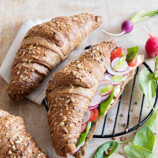 - Fonte di fibre con farina integrale (10%) e semi di papavero, girasole, lino scuro nell'impasto e sul topping
