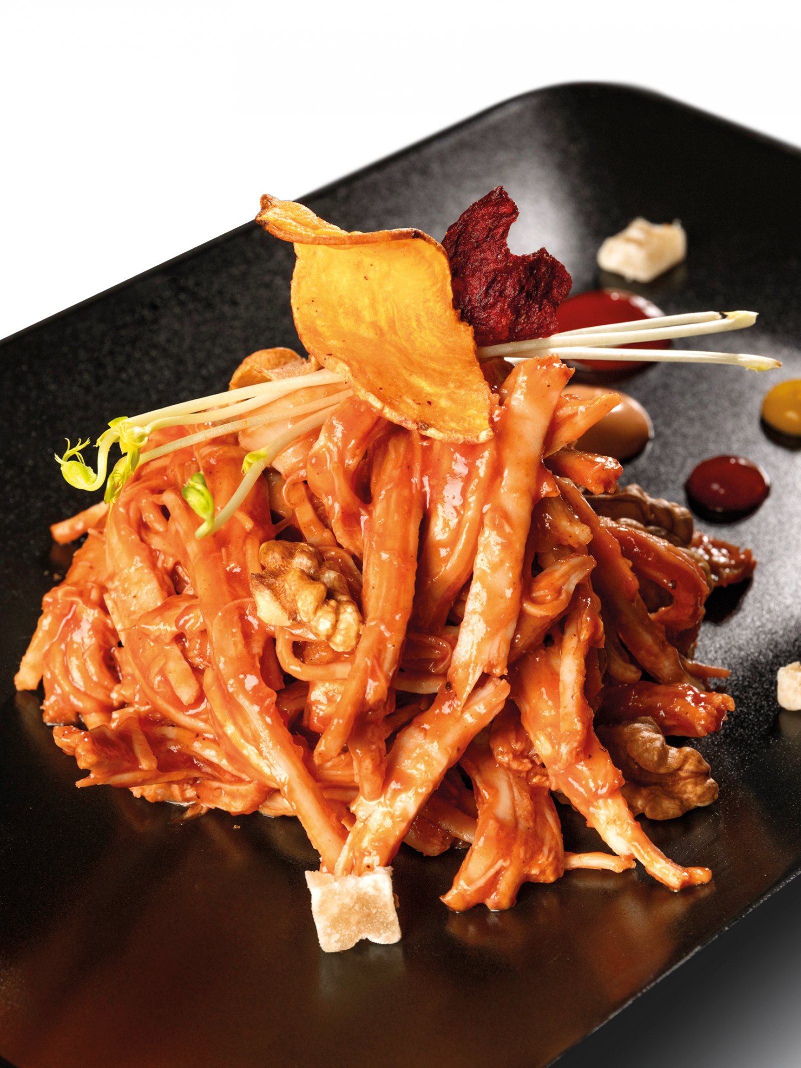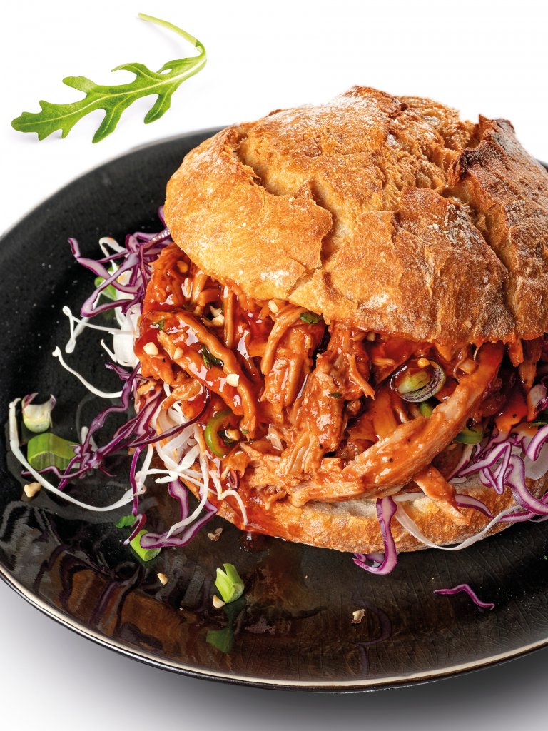 Spalla maiale sfilacciata, cucinata ed affumicata lentamente ed a bassa temperatura in perfetto stile “Low & Slow“. La carne risulta molto tenera ma dal sapore deciso e succulento. Adatta per i locali con cucine piccole, per praparare pranzi veloci ed aperitivi gourmet.Perfetto con salsa BBQ o con Tennessee whisky BBQ, ideale per farcire sandwiches, tortillas o servito al piatto accompagnato da insalata, verdure grigliate, o patate fritte.