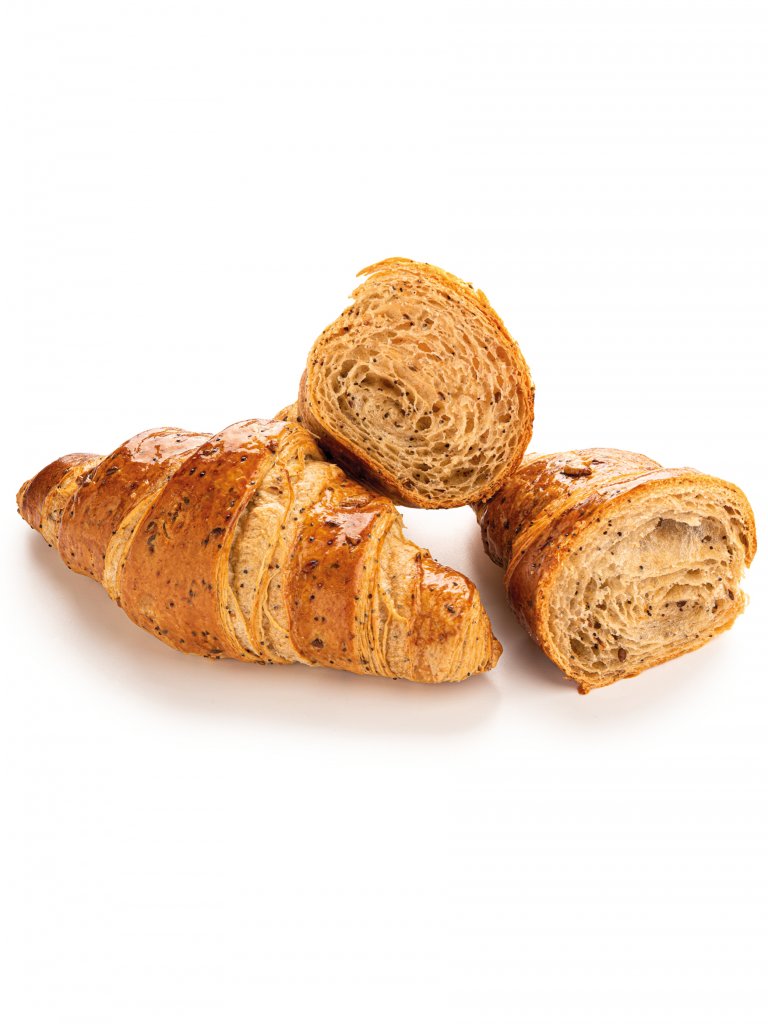 Una tradizionale sfoglia al burro declinata in versione multi cereali con aggiunta di farina integrale, ricco di semi di papavero, girasole e lino per un'esplosione di sapore intensa e raffinata. Sorprendente abbinato a creme e marmellate.