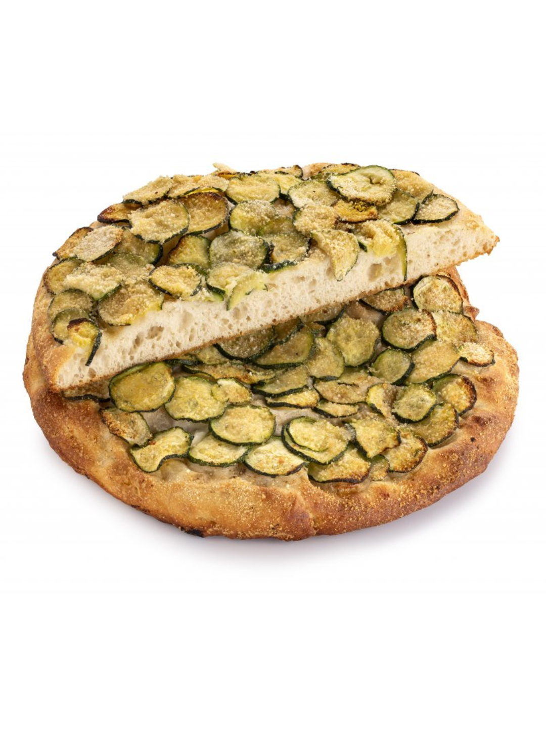 Impasto classico della focaccia barese: farina tipo “0” e semola di grano duro. Prodotto italiano, realizzato in provincia di Bari. Ingredienti d’origine selezionati di alta qualità: olio EVO 100% italiano, farine macinate in Italia, zucchine Italiane.