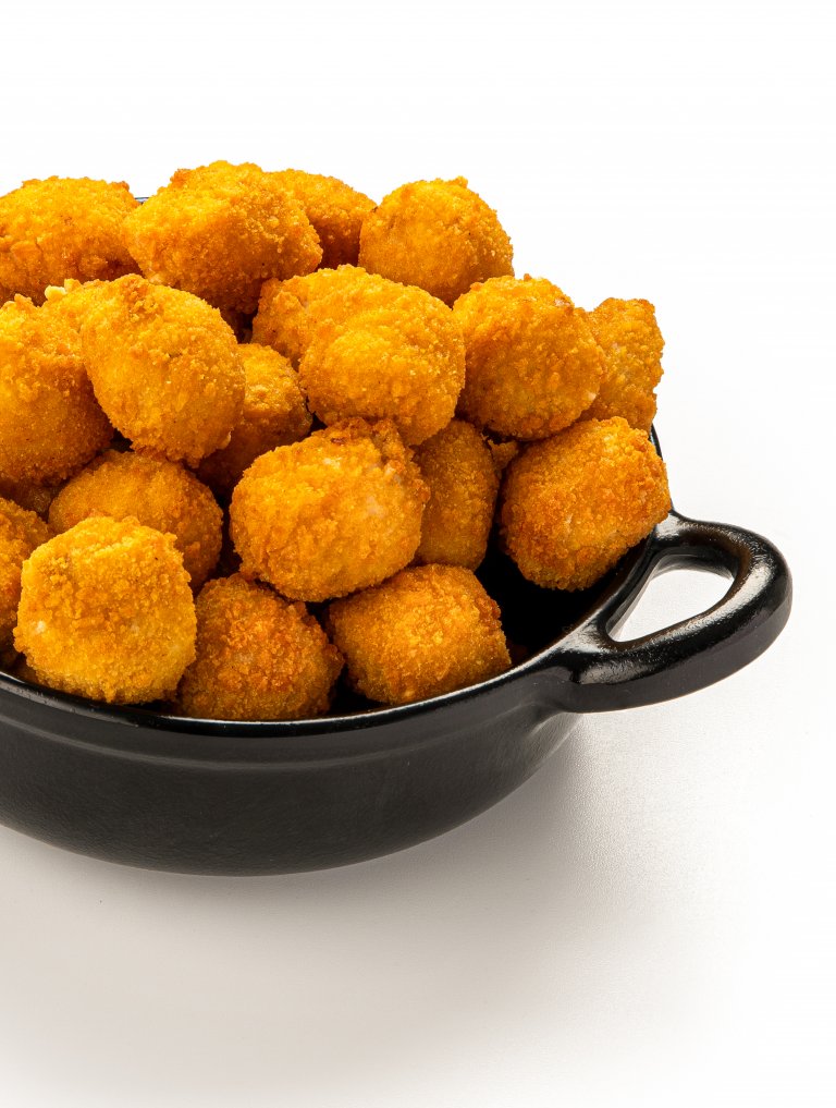 Ogni boccone di queste piccole sfere croccanti è una perfetta combinazione di sapori: la delicatezza del pollo, la sapidità dello speck e la cremosità del provolone, il tutto racchiuso in una croccante panatura che rende queste Chicken Balls irresistibili.