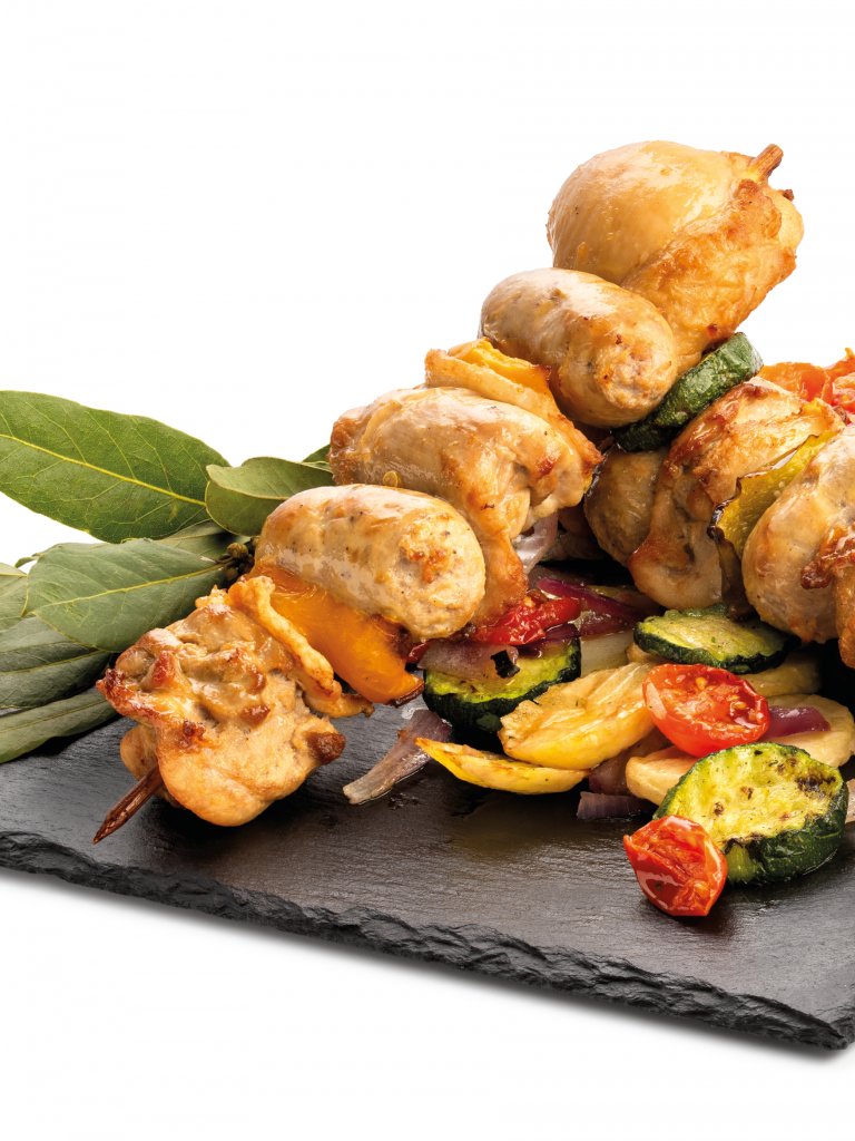 Lo spiedone rustico unisce saporita salsiccia leggermente speziata con teneri pezzettini di carne di pollo, pancetta di maiale dal sapore dolce ma allo stesso tempo sapido, il tutto bilanciato da fettine di peperone che puliscono la bocca tra un pezzetto di carne e l’altro.
