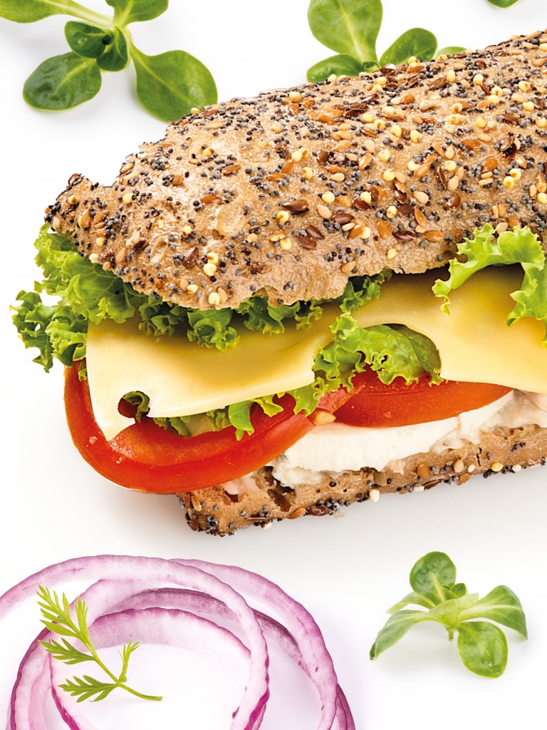 Un panino ricco di fibre grazie al 70% cereali, tra cui segale, avena, orzo e cereali maltati e ai semi di girasole, sesamo, lino, miglio, papavero e zucca. L'impasto dal colore più scuro e il topping di semi è ottenuto con una lievitazione con biga.