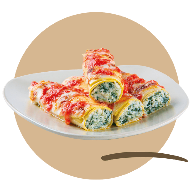 I cannelloni ricotta e spinaci racchiudono la delicatezza della ricotta e il profuumo fresco degli spinaci in una morbida pasta all'uovo.
