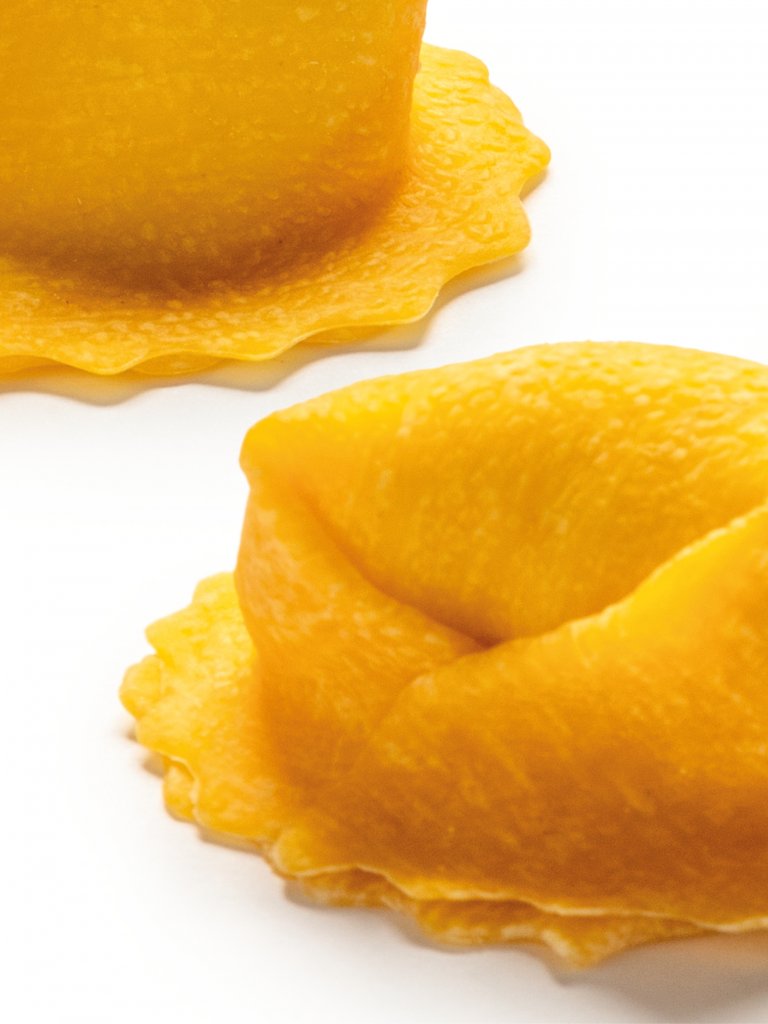 Pasta fresca artigianale composta da 100% farine italiane e ingredienti del territorio con una formula di 8 uova su 1 kg di farina per una pasta di alta qualità.