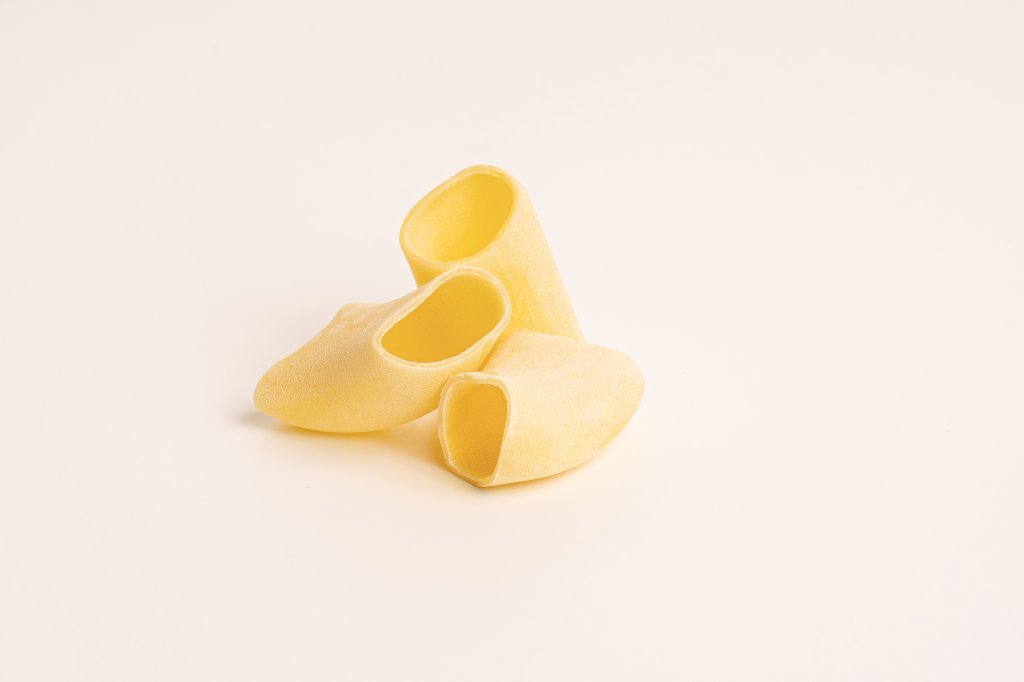 I paccheri di semola di grano duro lisci nascono da un impasto essenziale, solo semola di grano duro e acqua. La forma cilindrica, ampia e regolare, rimane liscia all’esterno ma con un leggero velluto naturale che accoglie ogni condimento, mentre lo spessore generoso garantisce una masticabilità corposa e appagante.