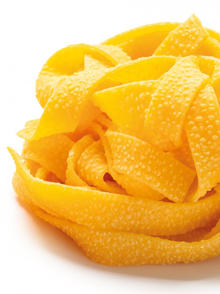 La sfoglia si presenta porosa e ruvida consentendo di trattenere e raccogliere al meglio il condimento mentre il suo processo di lavorazione garantisce una perfetta cottura non facendola scuocere mai.