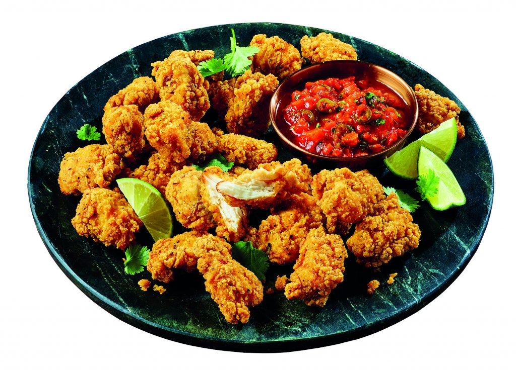 Pop-corns di tenero, gustoso filetto di pollo, tagliato a mano ed avvolto in una croccante panatura piccante.