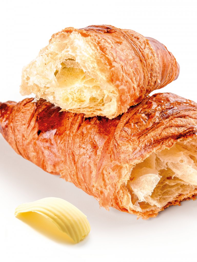 Un lungo processo di riposo accompagna l'impasto alla migliore stratificazione, per creare un croissant croccante fuori ma dal cuore morbido, che si scioglie in bocca. Tutto questo grazie anche al 21% di burro che dona leggerezza e profumo di latte.