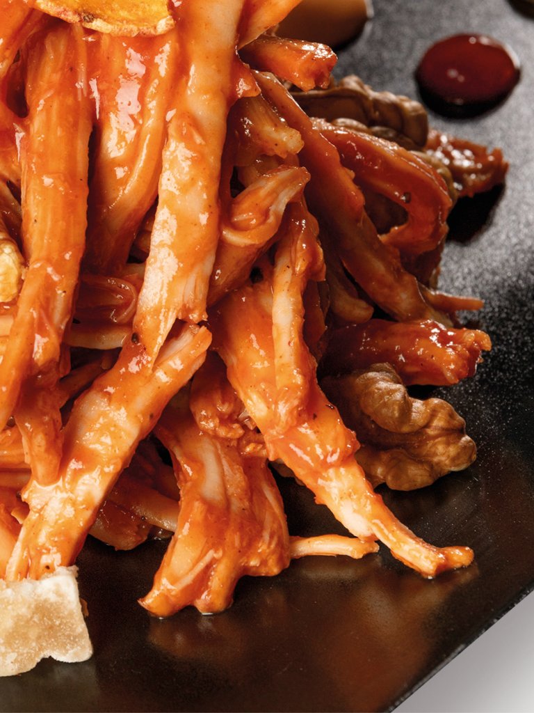 Pulled Pork al massimo della praticità: spalla di maiale sottoposta a cottura lenta avvolta da una croccante impanatura. La salsa barbecue dal gusto affumicato e i tocchetti di jalapeño infuocano il gusto.
