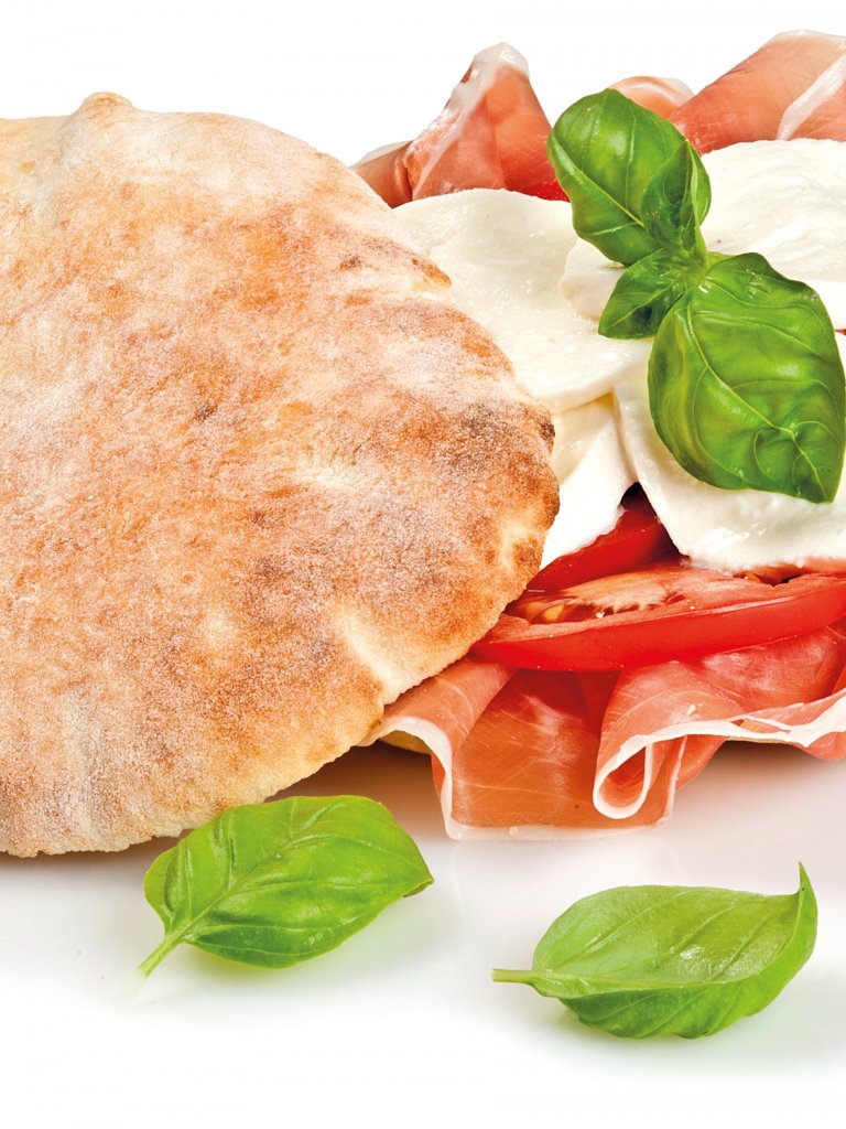 Pane pizza interamente fatto a mano con metodo artigianale, ottenuto da impasto misto di farina di grano e patate in fiocchi. Ideale da farcire. Diametro di 13-15 cm.