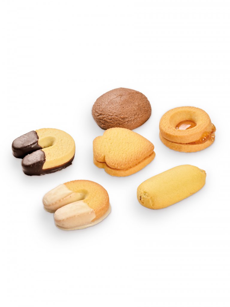Assortimento di pasta frolla dalle diverse forme e farciture per una gamma completa e versatile. Adatte per ogni momento della giornata.