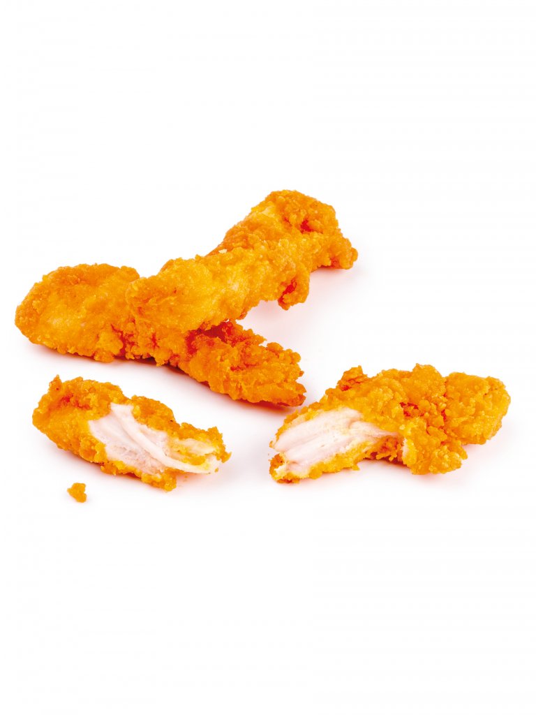 Filettini di pollo avvolti in una croccante e fragrante panatura al sapore di Chili e paprika. Ideali per il tuo apertivo o buffet finger food.