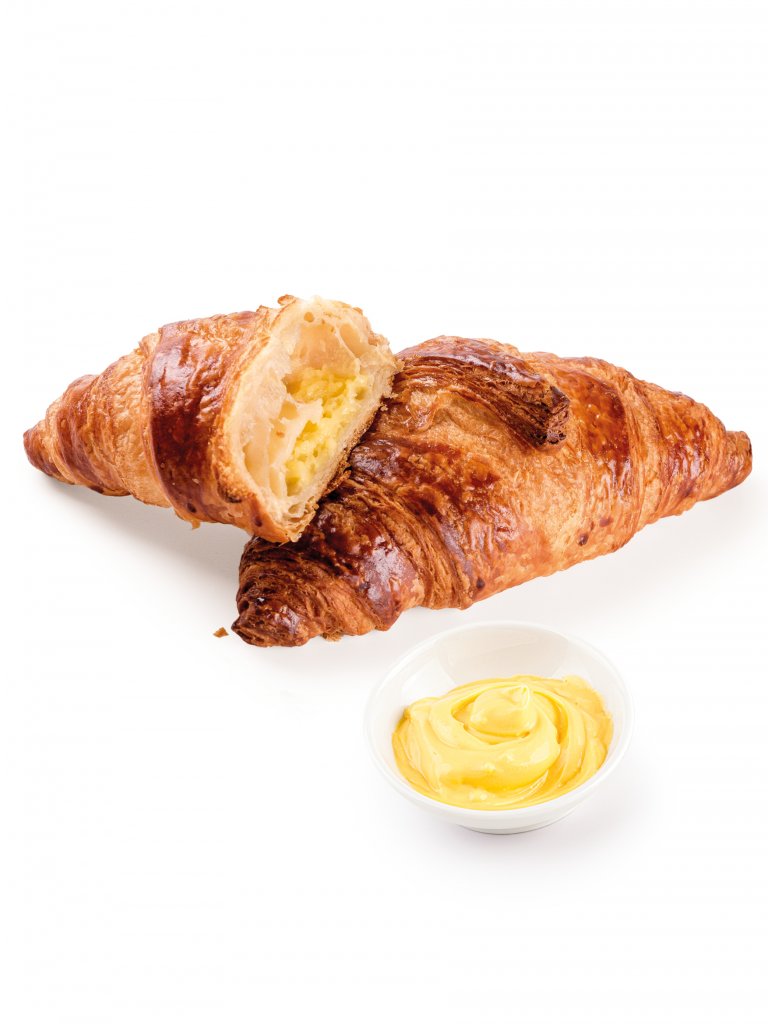 Croissant dal carattere tipicamente croccante,con impasto al burro lasciato riposare per lungo tempo, alveolatura aperta, laminazione ben visibile. L'aspetto è dorato e lucido grazie all'uovo spennellato in superficie, il croissant Royal custodisce una delicata crema pasticcera dal sapore naturale e dalla consistenza cremosa.