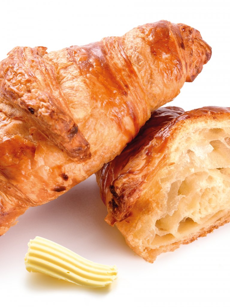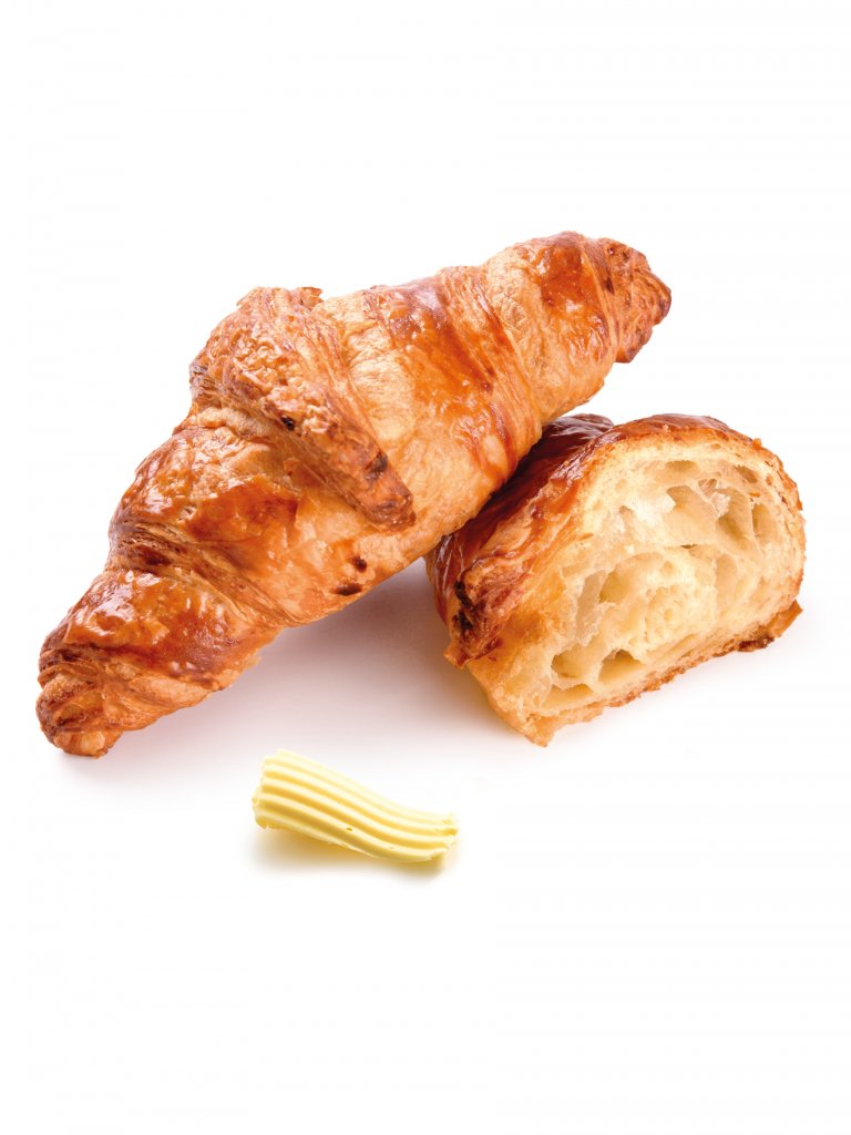 Croissant dal carattere tipicamente croccante, con il 24% di burro nell'impasto lasciato riposare per lungo tempo, alveolatura aperta, laminazione ben visibile. L'aspetto è dorato e lucido grazie all'uovo spennellato in superficie, ideale per essere farcito. Il croissant Royal al burro è una pura delizia.