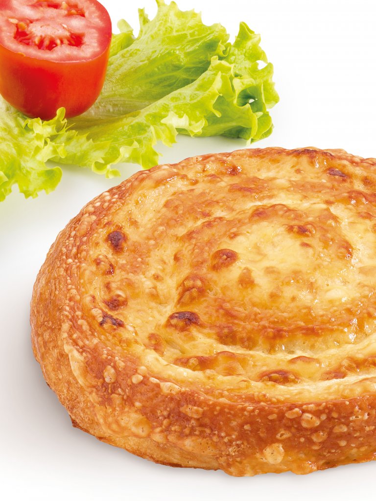 Girella di pasta sfoglia lievitata con una combinazione golosa di due formaggi: farcitura di mozzarella, arricchita da una fetta di Gouda gratinata che fa di questo snack una combinazione croccante e gustosa.